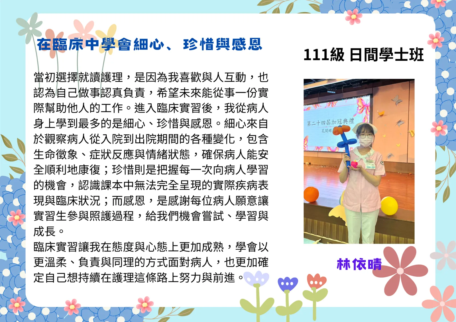 在臨床中學會細心、珍惜與感恩——一段護理學生成長的實習旅程